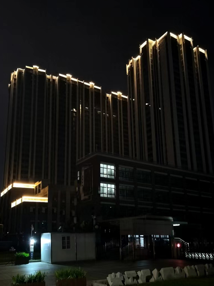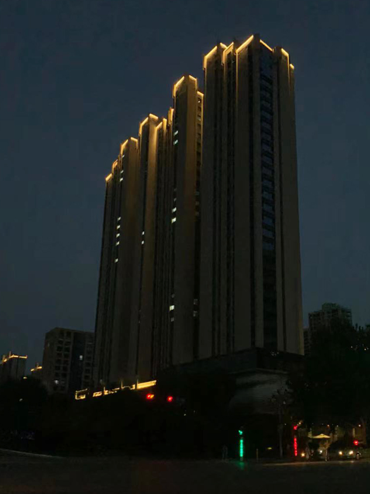 簡介—— 蔚來熙語項目位于航天城航天中路與神舟二路十字東南角,項目占地15畝,由2棟公寓及其商業生活配套組成,Art deco的建筑風格。我司承擔外立面亮化工程,對樓體頂部打亮及樓體線條的勾勒,做輪廓亮化,突出整體建筑,美化樓體。